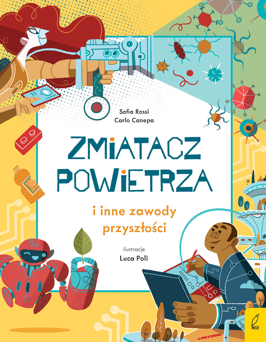 Koniec marzeń o tym, żeby zostać gwiazdą piłki nożnej czy baletnicą - dzięki tej książce dzieci dowiedzą się, jakie nowe zawody będą mogły wykonywać w przyszłości! Czy wyławiacz plastiku uratuje oceany przed plagą plastikowych śmieci? Czy zszywaczka DNA zreperuje chore genomy? Czy projektant dzikiej przyrody pomoże zachować zagrożone środowiska naturalne? Książka "Zmiatacz powietrza" poprzez zabawne przedstawienie nieistniejących jeszcze zawodów, ukazuje najnowszy rozwój wiedzy i badań naukowych. Historia zabiera czytelnika w podróż w przyszłość, zapoznając z możliwymi odkryciami naukowymi na kilku polach: od fizyki, przez ekonomię, po biologię i ekologię.