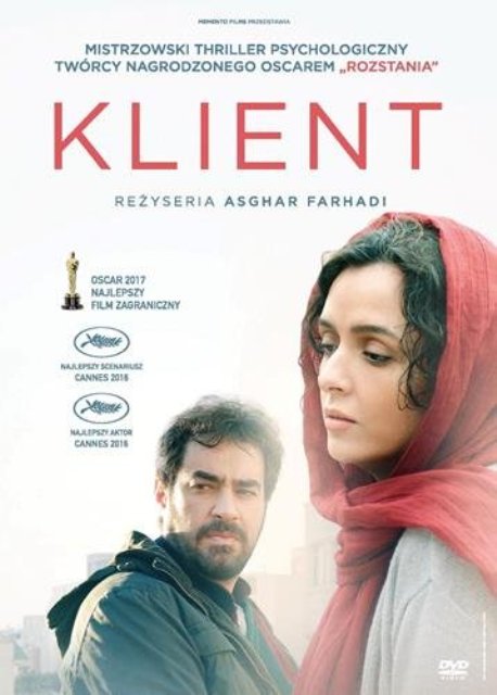 Klient / reżyseria, scenariusz Asghar Farhadi. - Wersja polska / tekst Krzysztof Umiński. - Warszawa : Gutek Film, [2017]. - 1 dysk optyczny (DVD) (118 min) : dźwiękowy, kolorowy ; 12 cm + Dodatek drukowany: 21, [1] strona.